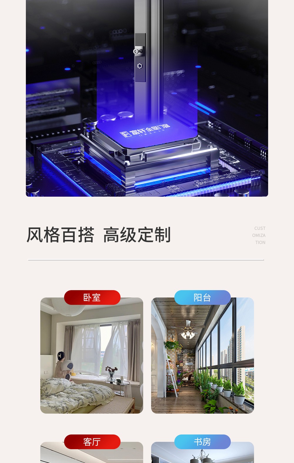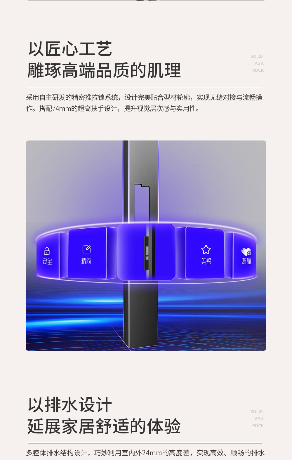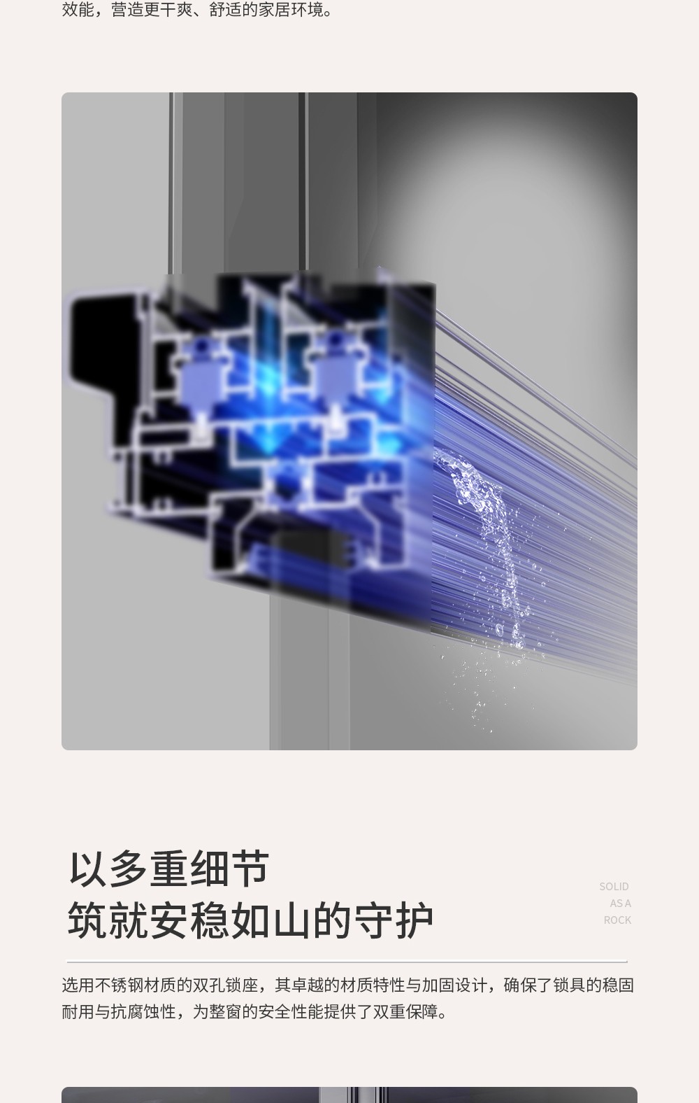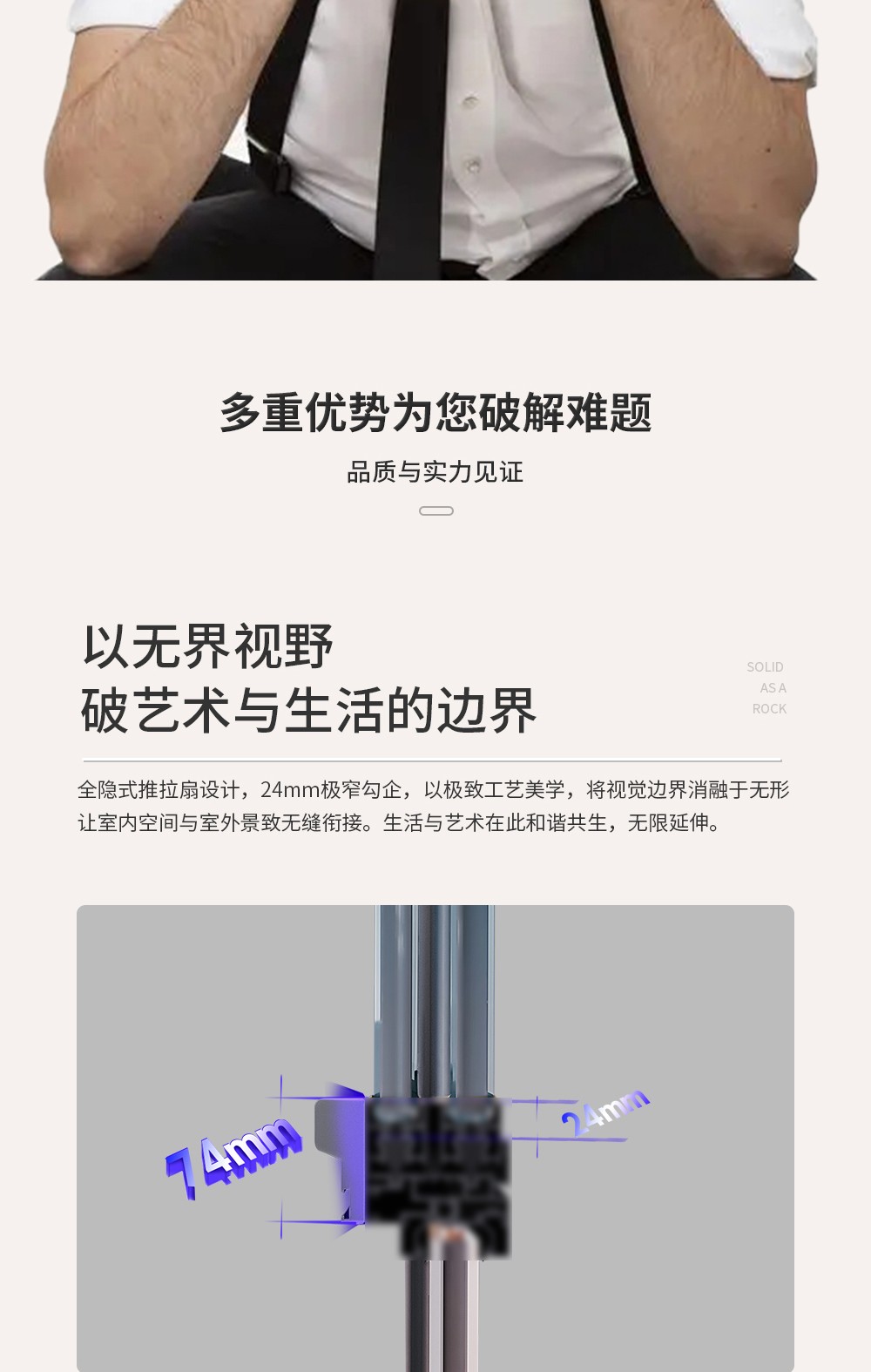 【產品系列】:推拉窗 【產品性能】:水密性能4級、隔音性能≥35DB、氣密性能5級、抗風壓性能8級、保溫性能K≤2.2 【產品結構】:獨特全隱框扇、多腔體排水結構、采用自主研發推拉鎖、超高74mm扶手,5+20A+5中空玻璃 【開啟方式】:二軌四扇、二軌二扇、三軌二扇帶紗、三軌四扇帶紗 【五金配件】:標配不銹鋼高清網