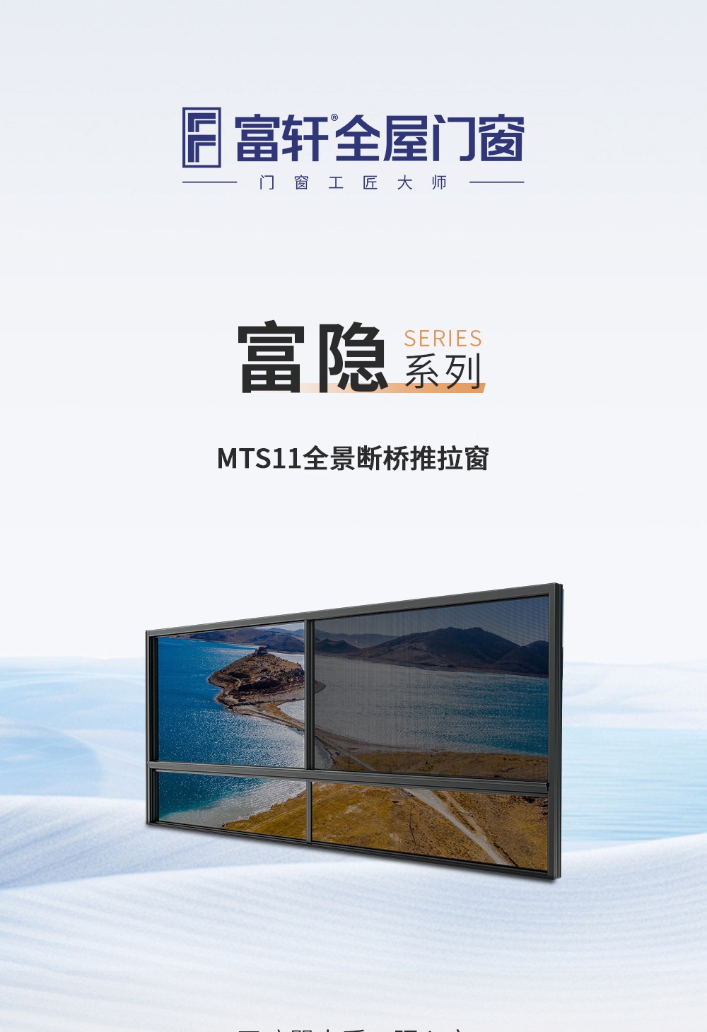 【產品系列】:富隱MTS11全景斷橋推拉窗 【產品性能】:水密性能5級、隔音性能≥35DB、氣密性能5級、抗風壓性能8級、保溫性能K≤2.5
