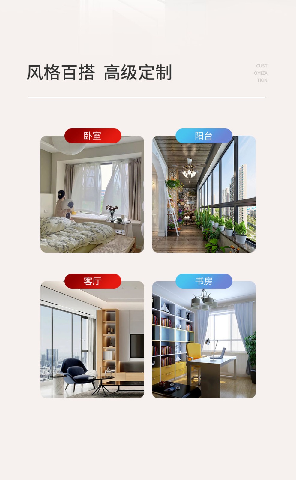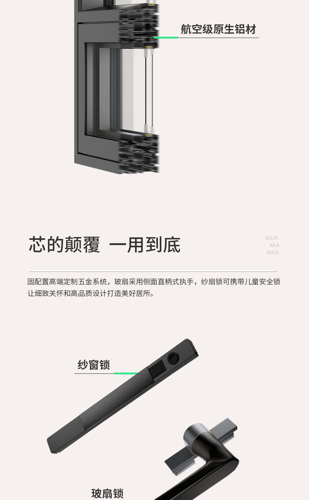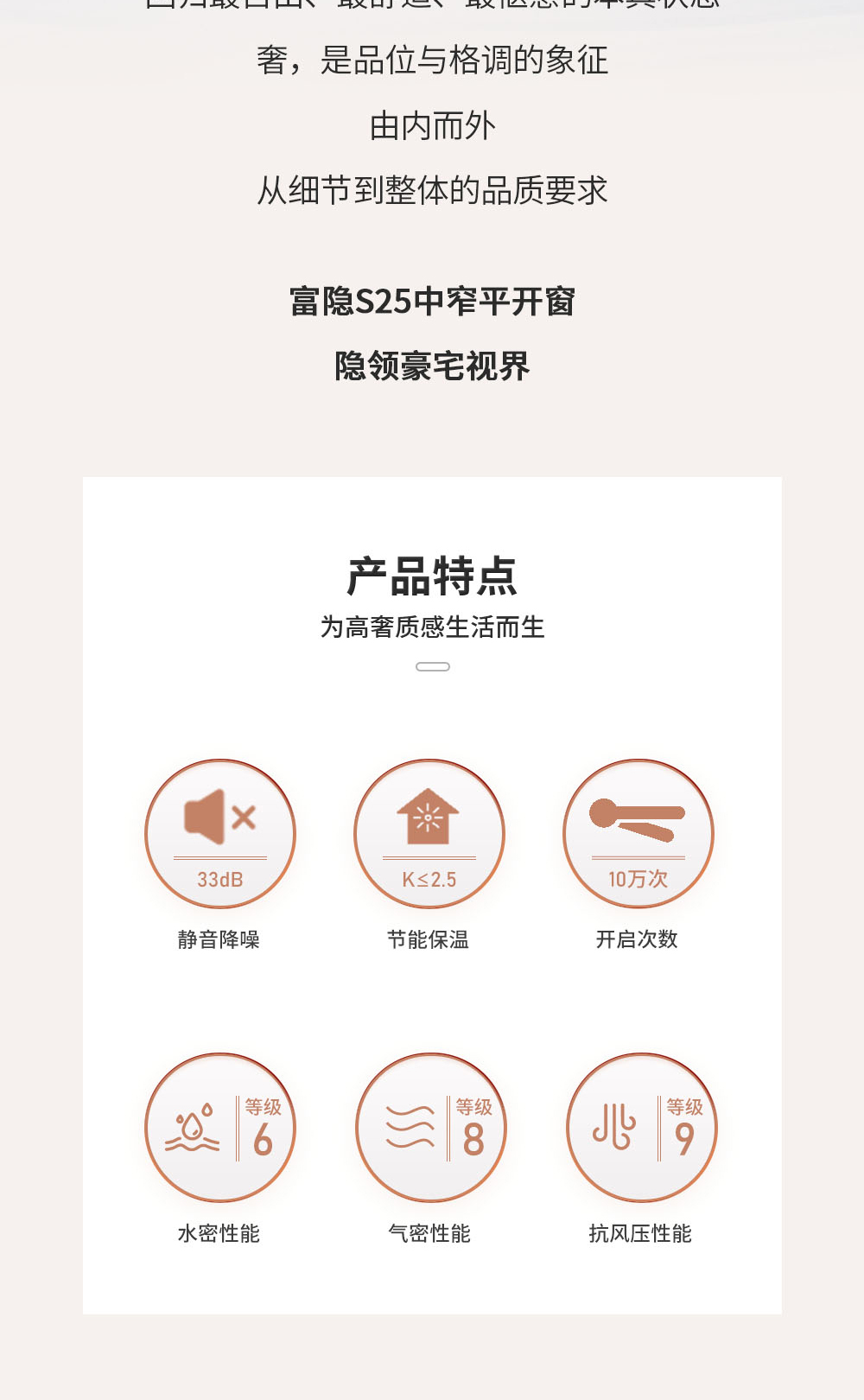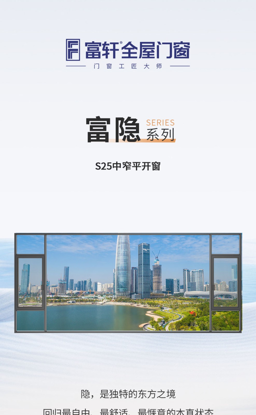 系列:富隱 型號:S25 水密性能:6級 氣密性能:8級 抗風壓性能:9級 隔音性能:≥33DB 保溫性能:K≤2.5 隔熱條:國產隔熱條 壁厚:1.8-3.0mm 中空:固定可選配 壓線:可選配/圓弧壓線/斜邊壓線 開啟方式:外開、下懸窗 防護欄/選配:固定 護角:圓弧護角(不銹鋼) 紗網:選配 標配鎖具:玻扇側面直柄式執手,紗扇平面式按壓鎖,附帶兒童安全鎖