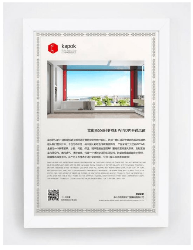 作為引領國內設計趨勢的紅棉設計獎·產品設計獎自啟動參評以來,在各大行業領域引起廣泛關注。富軒全屋門窗在本次參評中,“智能提升窗”和富那斯S5系列|FREE WIND內開通風窗喜獲“紅棉設計獎?2022年度產品設計獎”,因此,能夠一舉斬獲這一獎項,也是對富軒全屋門窗長久以來的努力最好的肯定與褒獎。