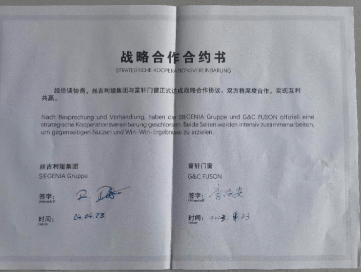 絲吉利婭是當今高檔窗門五金配件的領先品牌,近年來致力于深耕中國國內市場,服務于中國的各大門窗品牌。富軒全屋門窗作為國內門窗行業的領軍品牌,營銷矩陣早已從全網營銷上升到全球營銷,善于整合全球領先資源,深耕國內市場的同時積極開拓國際市場。在參觀絲吉利婭總部之后,國際國內雙強絲吉利婭和富軒當即達成了戰略聯合,現場簽訂戰略合作協議,形成優勢資源的互補和戰略上的共贏。