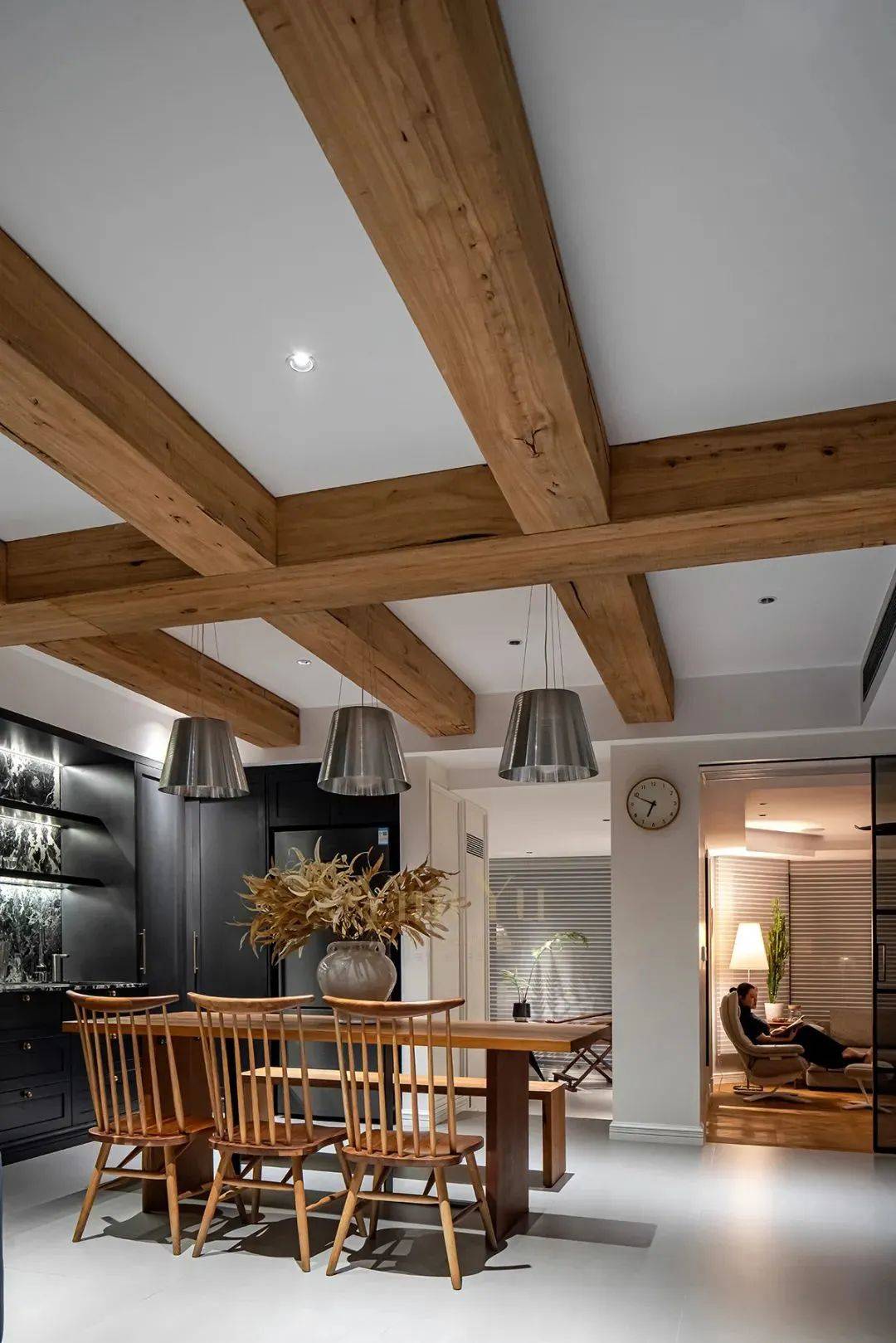 餐廳采用的是原始結構里的工人房空間,打造純天然美感,讓家中可以富含自然氣息,給人身臨其境置身于自然環境當中,放松身心,暢享愜意生活!擺放在中間的木質大案臺與配飾的淳樸相互呼應,點亮原本幽暗的環境氛圍。