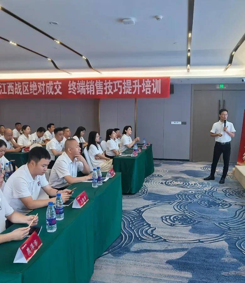 隨后,江西區域負責人李兆強向總部及全體經銷商作了2025年上半年江西區域業績總結及下半年策略規劃的詳盡匯報。報告全面分析了江西市場的銷售數據、渠道布局及競爭態勢,并對下半年的戰區策略、渠道管理優化、終端賦能計劃進行了詳細部署,為經銷商提供了清晰的作戰指南。