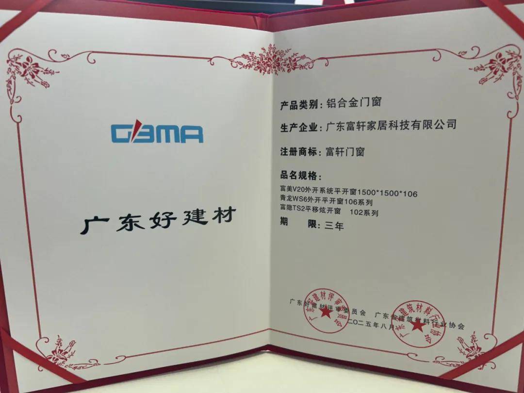 在這場聚焦行業(yè)前沿與未來趨勢的盛會中,富軒全屋門窗憑借在材料品質(zhì)、技術(shù)創(chuàng)新及適配“好房子”建設(shè)需求等方面的突出表現(xiàn),成功入選首批“廣東好建材”名單,以硬核實(shí)力彰顯品牌在推動建材行業(yè)高質(zhì)量發(fā)展中的標(biāo)桿地位。