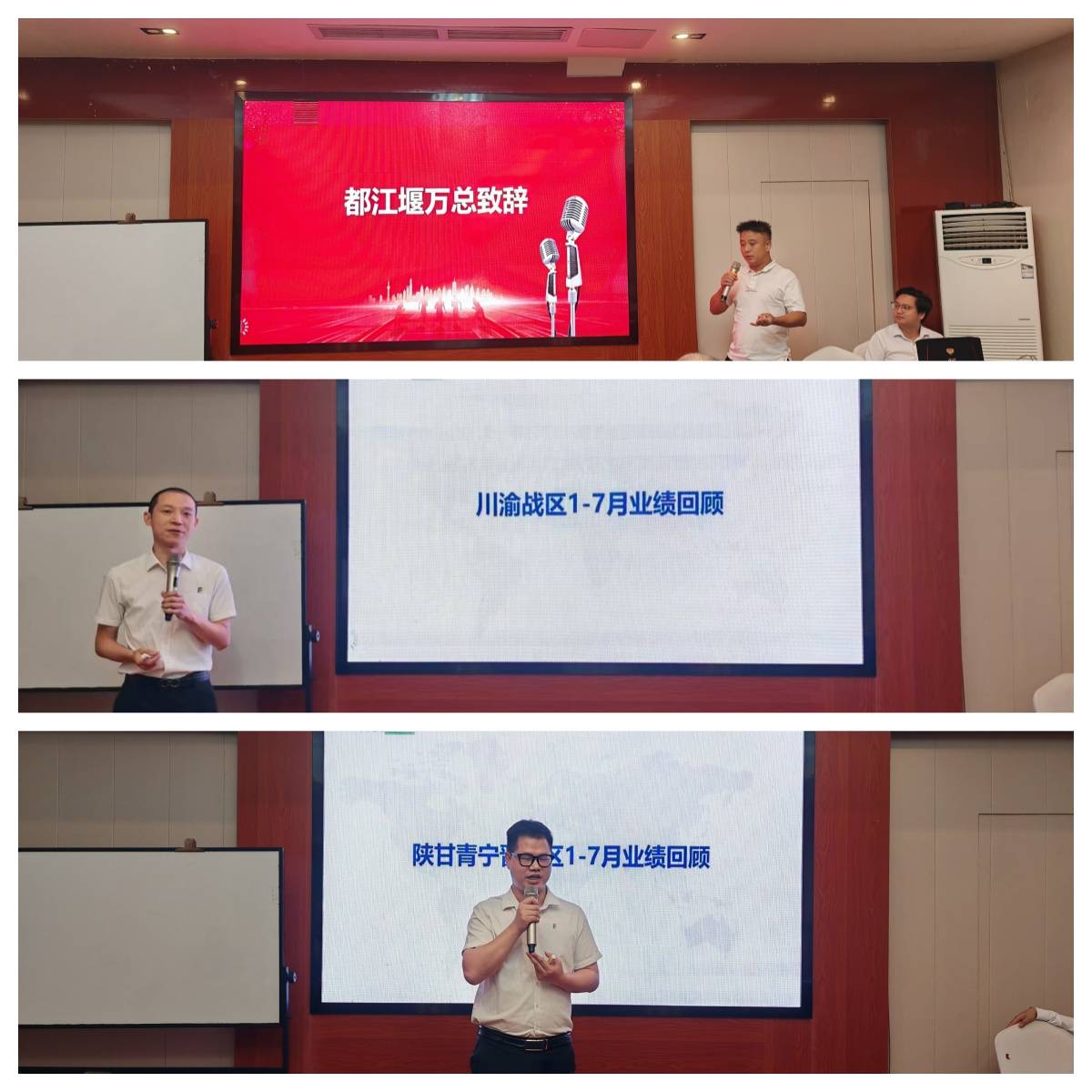 隨后,為幫助各區(qū)域經(jīng)銷商明確下半年發(fā)展路徑,川渝戰(zhàn)區(qū)負(fù)責(zé)人朱總、陜甘青寧晉戰(zhàn)區(qū)負(fù)責(zé)人孔經(jīng)理接力登場,帶來各區(qū)域上半年經(jīng)營工作報告及未來規(guī)劃,從年中數(shù)據(jù)復(fù)盤,剖析業(yè)績亮點(diǎn)與不足,到結(jié)合當(dāng)?shù)厥袌鎏匦裕贫ú町惢乜汀⒎?wù)升級策略,精準(zhǔn)布局下一階段經(jīng)營方向 。各區(qū)域依據(jù)當(dāng)?shù)厥袌鎏攸c(diǎn)分別制定切實(shí)可行的目標(biāo)計(jì)劃,一個個貼合實(shí)際的規(guī)劃,讓區(qū)域發(fā)展路徑清晰可見,為協(xié)同作戰(zhàn)筑牢根基。