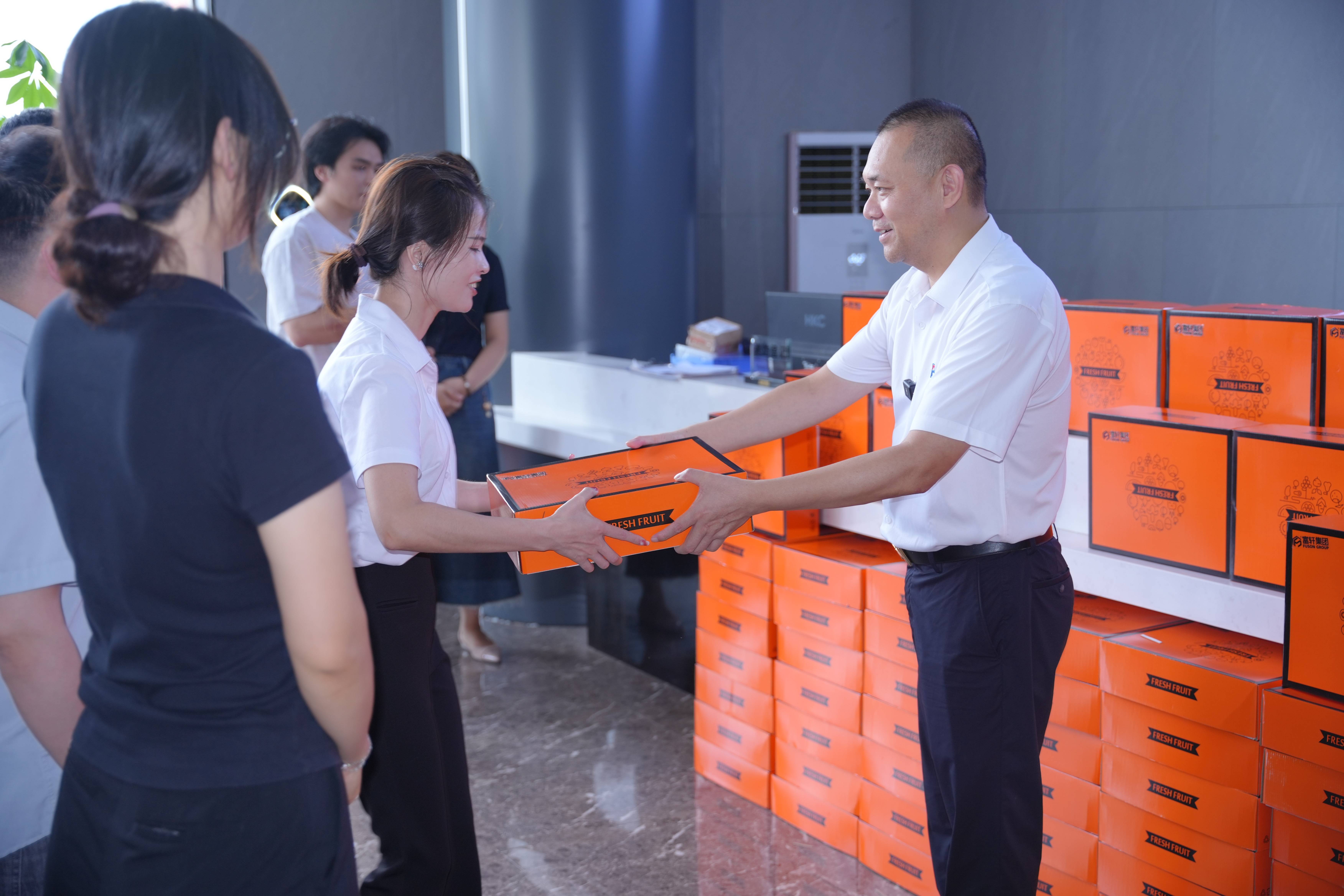 在這充滿溫馨與幸福的時刻,富軒集團董事長李董作為富軒的大家長,到場與全體員工提前感受中秋佳節的濃厚氛圍,并為大家發放節日禮品,送上節日祝福;沉甸甸的中秋禮品不僅是節日的儀式感,也承載了集團對全體同仁的關懷與惦念。