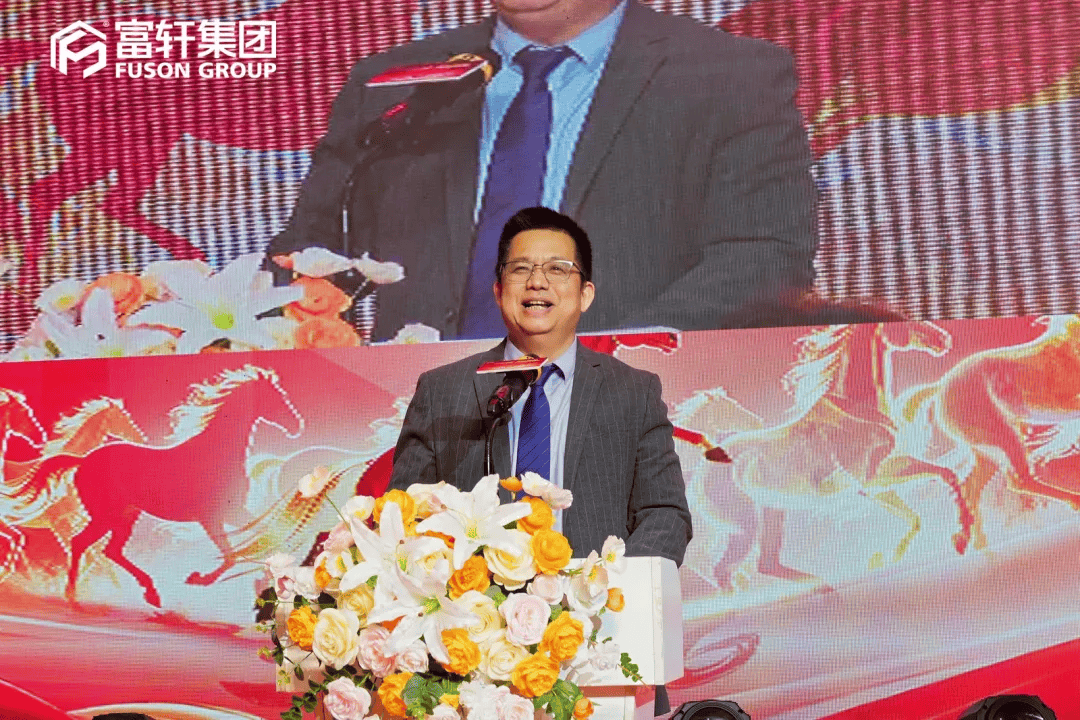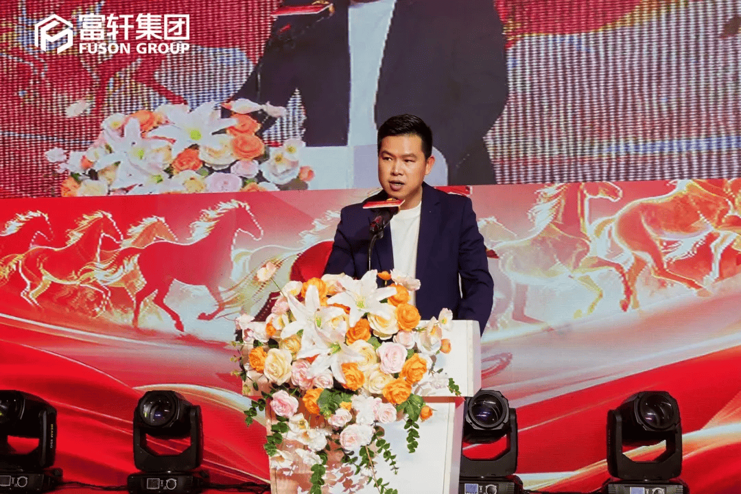 隨后,富軒集團李董發(fā)表新春致辭,深情回顧了過去一年集團在各業(yè)務板塊的豐碩成果,向每一位并肩作戰(zhàn)的富軒家人、合作伙伴致以誠摯感謝。同時李董以“萬馬同窗,共躍新程”激勵在場每一位伙伴堅守初心,以“匠心”為魂、以“創(chuàng)新”為武器,共謀發(fā)展,在全球市場中持續(xù)拓展版圖。