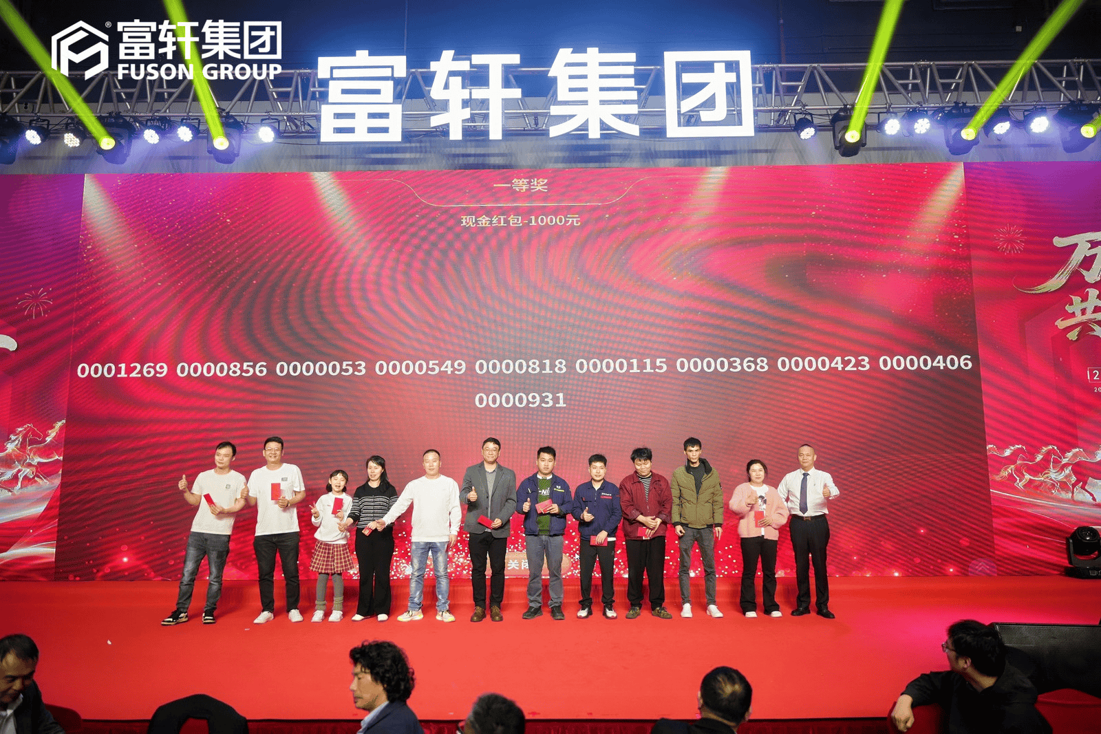 除了精彩的節(jié)目,激動人心的抽獎環(huán)節(jié)更是讓現(xiàn)場驚喜不斷、歡呼聲此起彼伏,百余項大獎依次抽出,豐厚的現(xiàn)金獎勵讓每一位幸運兒們喜笑顏開。一波波驚喜將晚會氣氛不斷推高。這不僅是對員工一年來辛勤工作的答謝,更是富軒集團注重員工關懷、打造幸福企業(yè)的溫暖實踐。最終,年會在主持人的溫馨結(jié)束語與全體工作人員的合影中圓滿落幕。
