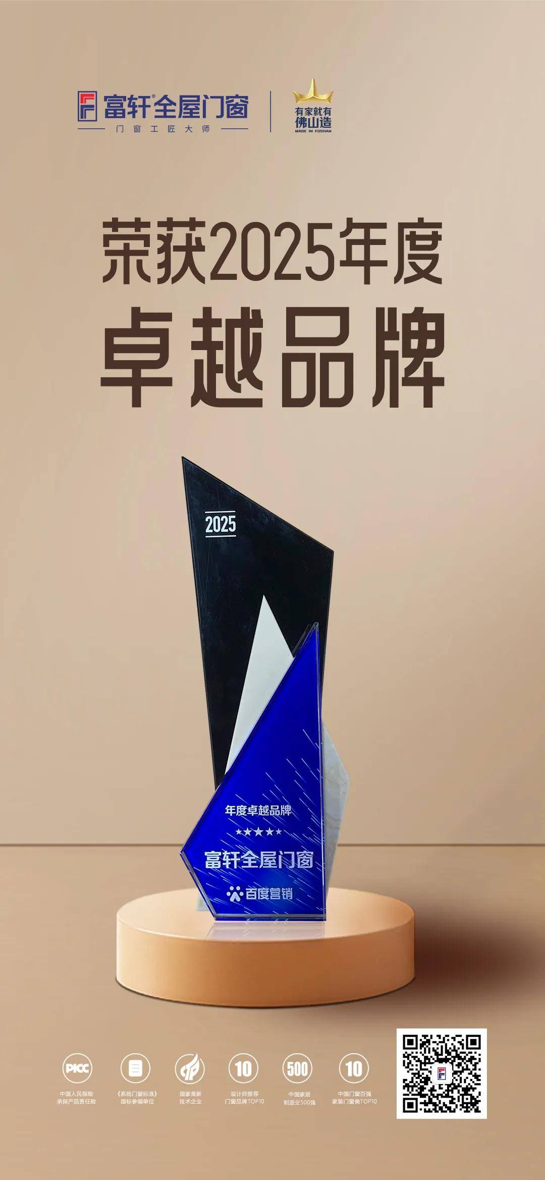 載譽前行,智啟新程富軒全屋門窗榮獲百度營銷2025年度卓越品牌