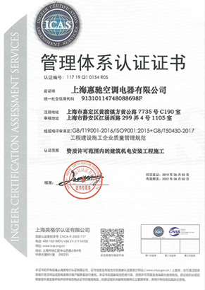 國家建筑企業資質認證 ISO工程質量認證 上海市空調安裝協會會員 生產改造安全許可證 國家三A級信用企業 上海冷凍協會會員