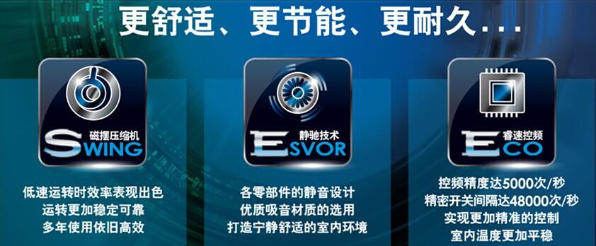 創新型設計將擺動式壓縮機、磁阻式直流馬達和控制芯片完美融合,核心部件與上一代相比全面升級,將尖端技術典藏于品質之中,集經典與品質于一身。擺動式壓縮機:低速運轉時效率表現出色;運轉更加穩定可靠;多年使用依舊高效;大直徑貫流風扇:采用大直徑風扇提高風量;獨特葉片角度設計;大風量更靜音;靜音馬達:10級ODM直流電機;優質吸音材質的選用;打造寧靜舒適的室內環境;翼型風扇:運用仿生學;減少氣流消耗;降低運轉音;精準變頻:控制精度達5000次/秒;精密開關間隔達48000次/秒;更加精準的控制;室內溫度更加平穩;高性能熱交換器:增大熱交面積;優化翅片間距:有效提升空調效果。