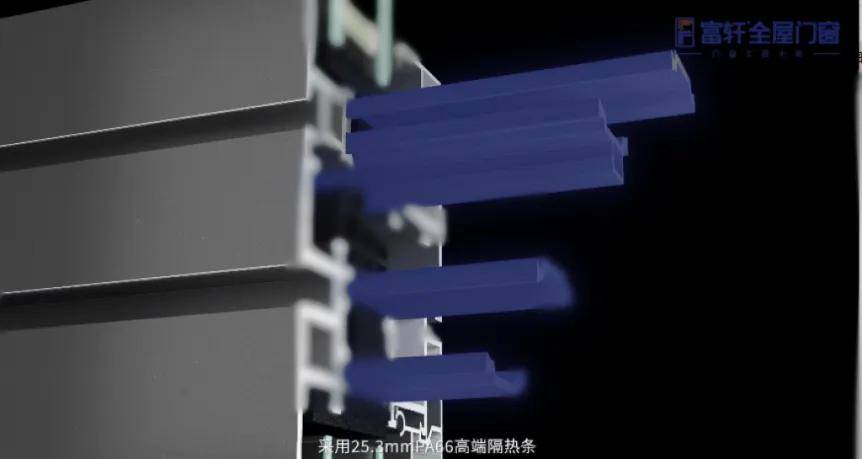 富軒全屋門窗采用航空級原生鋁材,斷橋鋁多腔體結構,在型材斷開處嵌入PA66隔熱條,既阻斷了室內熱量通過型材向外傳導,同時還搭配垂直等溫線設計,讓門窗隔熱性能更上一層樓,窗外冷空氣不易進入室內,室內溫暖不會輕易流失,告別關窗開了暖氣卻依然感到寒冷的尷尬。
